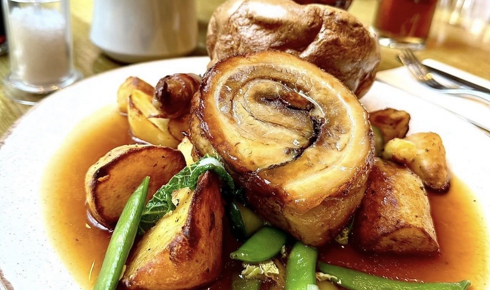 Available on Sunday only 28 Day aged sirloin of beef with roast potatoes, seasonal vegetables topped with homemade gravy & a Yorkshire pudding